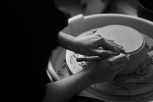 Efter att ha fött två barn och skaffat mig ett inrutat liv med kontorsjobb och fasta tider behövde jag en ventil i en alltmer stressad tillvaro. Jag hade testat att dreja ett par gånger tidigare och tyckte att det var såå härligt. Jag började en kvällskurs med en nära vän 2016, gick några terminer och ville sen fortsätta med lera och bygga vidare på mitt intresse. Sökte då in till folkhögskola och började läsa keramik. När utbildningen var klar hade vi sålt vårt hus, köpt en ny fastighet där jag kunde ha min verkstad, byggt studio och inrett en butik. Jag hade sagt upp mig från min heltidstjänst och startade i gång företaget. Jag är allt eller inget.