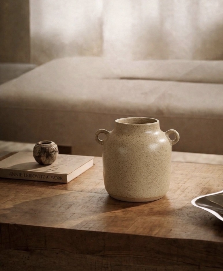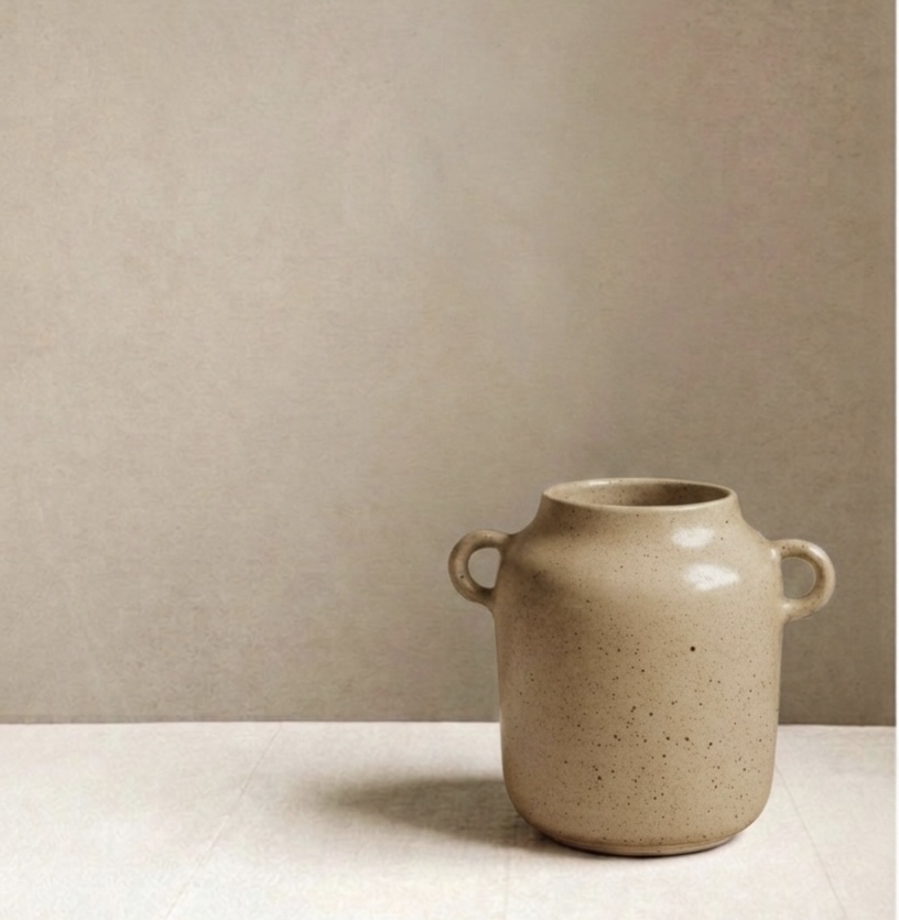 Den första dekorativa funktionen. En dåtida behållare, ett kärl eller en annan version av en kruka - oftast i keramik med handtag och ibland med kork. Något av dåtid som jag valt att framställa i nutid. Kruset har funnits med mig sen jag startade Ljung by Ljung och är drejat i en tålig stengodslera.