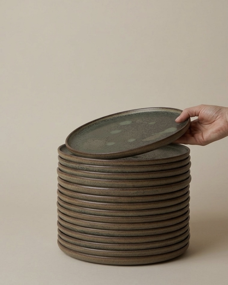 Den gröna glasyren är levande och varm, inspirerad av den småländska skogen. Ibland blir färgen mörkare, ibland blir den ljusare, beroende på hur tjockt glasyren lägger sig eller vart keramiken har placerats i ugnen vid bränning. Varje produkt är en aning olik den andra och skapar tillsammans en vacker komposition på det dukade bordet. Kombinera gärna tallrikar, koppar eller skålar i Skogsgrön med keramik i någon av de andra glasyrerna.