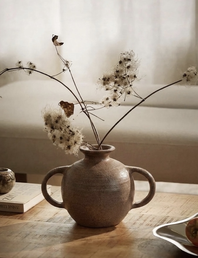 Glasyren Mylla har en dämpad, dovt mullvadsfärgad ton och har ett djup som skiftar beroende på hur ljuset faller. Små variationer i mättnad uppstår där glasyren ser något mörkare ut i fördjupningar på grund av att glasyren lagt sig lite tjockare. Den är samtidigt tunnare och ljusare på de mer exponerade kurvorna. All keramik i glasyren Mylla har en sidenmatt finish och reflekterar ljuset mjukt, vilket blir tydligt i skarpare solljus.